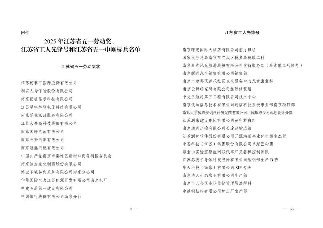 近日,江苏省总工会、江苏省人力资源和社会保障厅联合印发《关于表彰2025年江苏省五一劳动奖、江苏省工人先锋号和江苏省五一巾帼标兵的决定》,集团所属江苏省招标中心有限公司招标与采购五处荣获“江苏省工人先锋号”荣誉称号。