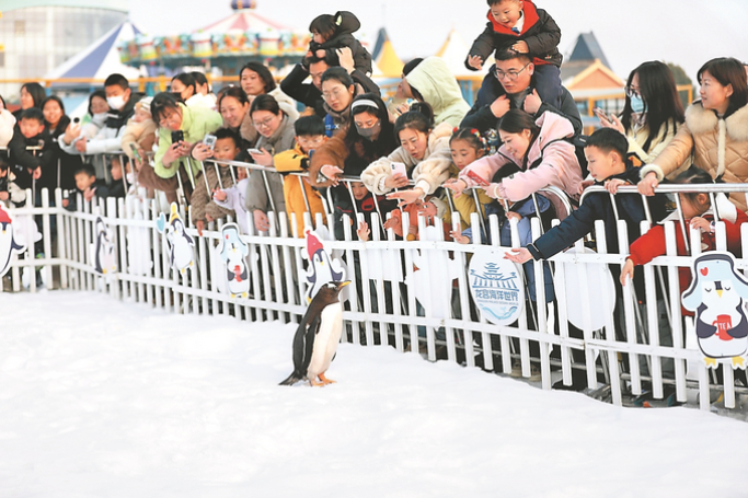1月4日,淮安市龙宫海洋世界举办冰雪节,不少游客前往游玩,尽情感受冰雪带来的快乐和趣味。 殷潮 杨沁雪 摄(视觉江苏网供图)