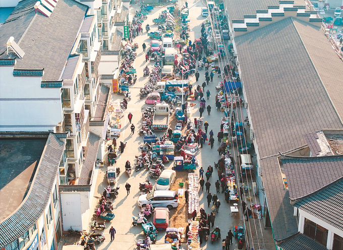 春节临近,淮安市各地的乡村集市热闹非凡。图为昨日,人们在淮阴区马头镇的乡村大集上选购年货。贺敬华 摄 (视觉江苏网供图)