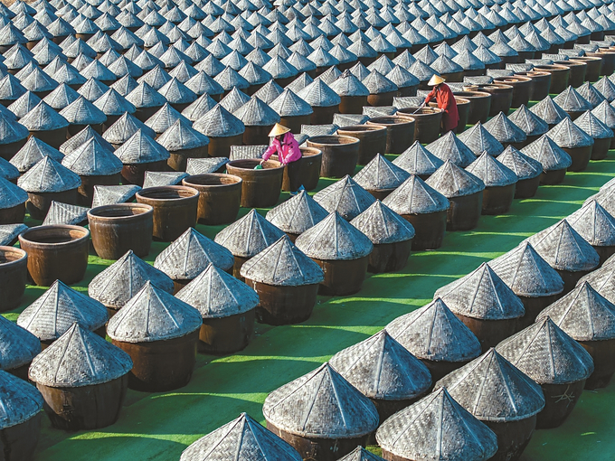 1月12日,淮安市一家“中华老字号”酱醋厂正加班加点忙生产,满足节日市场供应需求。图为工人正在晒场上忙着浇卤作业。 张照久 摄(视觉江苏网供图)