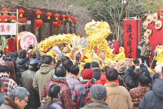 春节将近,淮安市洪泽区老子山镇龟山村举行了“渔火传千年 石屋启新岁”迎新春活动。当地村民与游客齐聚古村,欣赏传统民俗表演、体验渔家文化,并在石屋院落间设长桌宴,品味地域特色美食。 万震 摄(视觉江苏网供图)