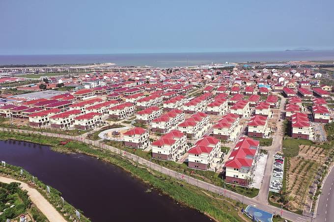 近年来,连云港市赣榆区加快推进农民住房条件改善,打造美丽宜居的幸福乡村。图为五日拍摄的海头镇益海新型农村社区。 司伟 杜厚奎 摄 (视觉江苏网供图)