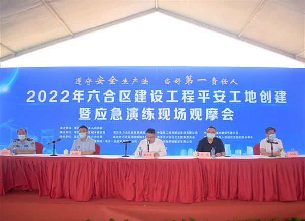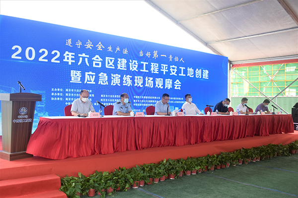 6月23日,由南京市六合区人民政府主办,南京市六合区城乡建设局、南京市六合区应急管理局、中国铁工投资建设集团有限公司、中铁铁工城市建设有限公司承办的2022年度“平安工地创建”暨消防安全应急救援演练现场观摩会在龙袍新城经济适用房(拆迁安置房)一期项目D地块顺利举行。