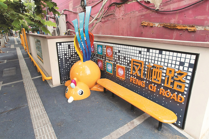 近日,南京市市级精细化重点项目——建邺区凤栖路道路环境整治工程完工,沿街小区围墙整体出新改造,融入“凤凰”元素,设置了多个特色场景。图为22日拍摄的凤栖路。