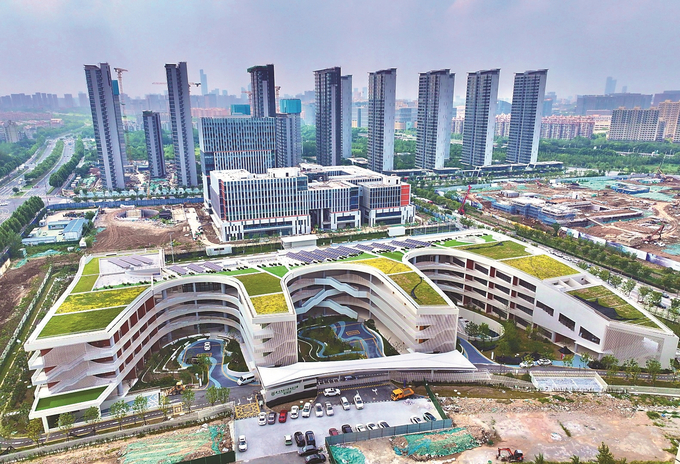 位于南京市雨花台区星野路36号的南京师范大学附属中学数字城学校近日挂牌。该校为九年一贯制公办学校,今年启动招生,计划招收小学一年级和初中一年级新生,将为区域教育资源再添新力量。图为昨日航拍的校园全景。 本报记者 范俊彦 摄