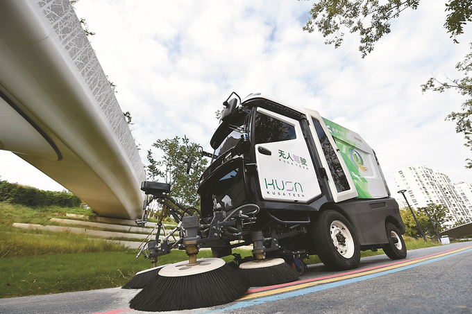 9月22日,在南京雨花数据线公园和城市公园,无人清扫车把路面打扫得干干净净。这批无人清扫车穿行于公园内部高效清扫,覆盖面积2万平方米,还可同步完成140处设施设备的安全巡检。这样的智能设备,适合高温、凌晨等时段进行保洁作业,大大减轻了环卫工人的工作压力。 本报记者 万程鹏 摄