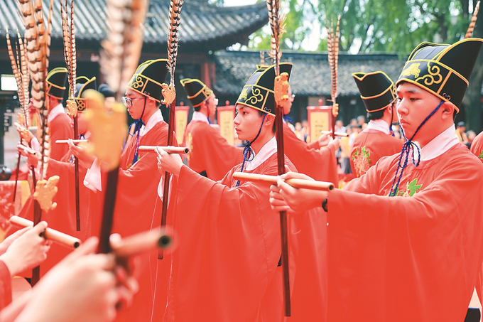 9月28日,南京夫子庙举行祭孔大典,纪念孔子诞辰2576周年。