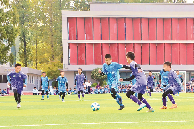 10月27日,新疆伊犁州四县市小学生到访南京小营小学,开启跨地域交流。学生们参观校园后,两场足球赛精彩上演。此次活动以球为媒,尽显学子风采,让民族团结之花在互动中绚烂绽放。图为学生们在切磋球技。 本报记者 范俊彦 摄
