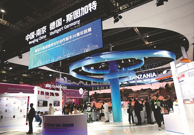 11月9日,第八届中国国际进口博览会在上海国家会展中心举行,“南京—斯图加特友好合作城市30周年联展”吸引大批观众前来观展。