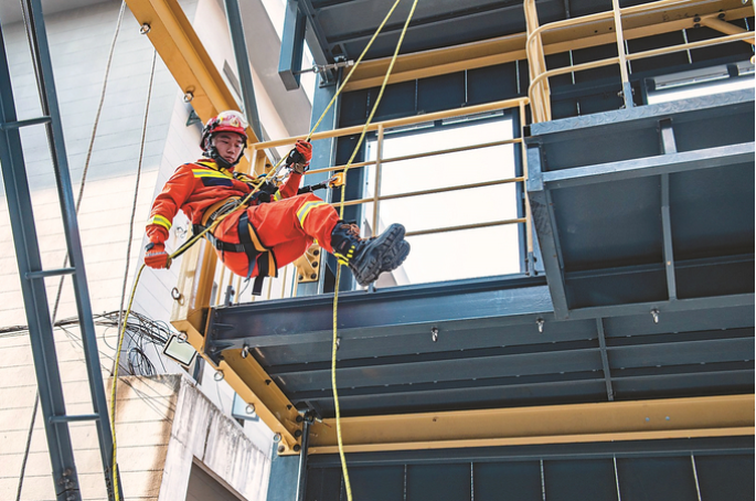 连日来,江苏省消防救援总队南京支队特勤大队紧贴冬季任务需求,组织消防救援人员开展绳索点降、楼层攀登、破拆救援、综合体能等课目的强化训练,进一步巩固提高消防救援人员的综合救援处置能力。余海洋 摄 (视觉江苏网供图)