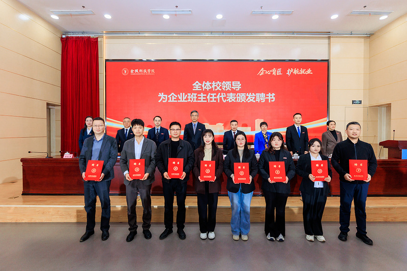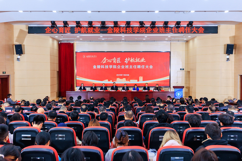 11月26日,金陵科技学院江宁校区科技楼报告厅内掌声阵阵,“企心育匠 护航就业”企业班主任聘任大会在此隆重举行。137位行业大咖接过聘书,正式成为该校“企业班主任”“就业护航大使”,与校内班主任携手构建“校内 + 校外”双导师育人体系,为应用型人才培养注入产业动能。