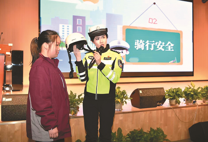 12月15日,南京交警机动和快速路大队走进南京市中华中学浦口雨山中学,开展“慧眼识风险,巧手护安全”交通安全课。围绕乘车、行人、骑车安全讲解知识,以理论+实践筑牢学生出行安全防线,助力青少年平安成长。 本报记者 范俊彦 摄