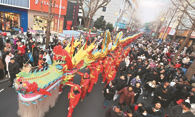 1月2日下午,南京市高淳区举行非遗大巡游活动,210米的巨龙让游客感受到浓烈的节日氛围。 本报记者 吴俊 摄