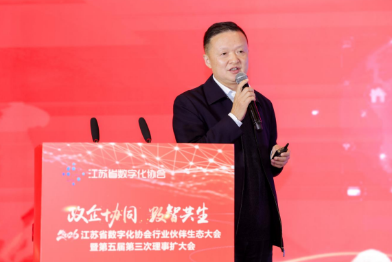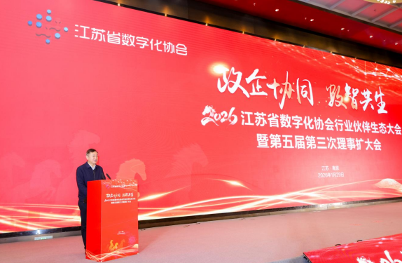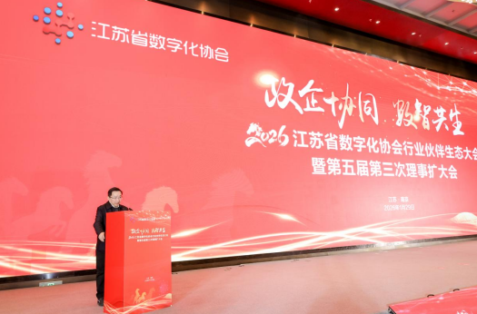1月29日,2026江苏省数字化协会(以下简称“协会”)行业伙伴生态大会暨第五届第三次理事扩大会在南京举行。为深入贯彻落实国家及江苏省数据工作会议精神,聚焦数据要素价值释放,培育壮大数据产业,加快人工智能应用,优化数据基础设施,构建数据标准体系,进一步发挥协会桥梁纽带作用,加快构建数智创新生态,全力服务数字江苏发展大局,本次大会以“政企协同·数智共生”为主题,回顾2025年行业发展成果,谋划2026年发展路径,为数字江苏建设注入行业服务新动能。