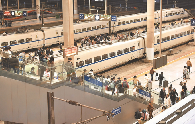 2月14日,南京南站迎来出行高峰。旅客们带着新春的喜悦踏上返乡路。本报记者 吴俊 摄 (视觉江苏网供图)