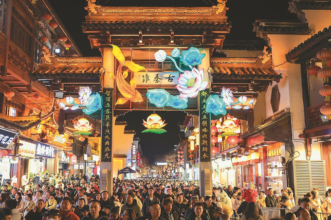 2月23日,据江苏省文化和旅游厅消息,2026年春节假期,江苏文旅消费迎“开门红”。图为2月17日,游客在南京夫子庙景区游玩。