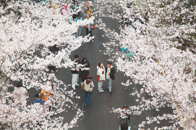 南京林业大学校园里樱花盛开,灿若云霞,吸引师生和市民赏花游玩。(摄于3月24日) 刘建华 摄(视觉江苏网供图)