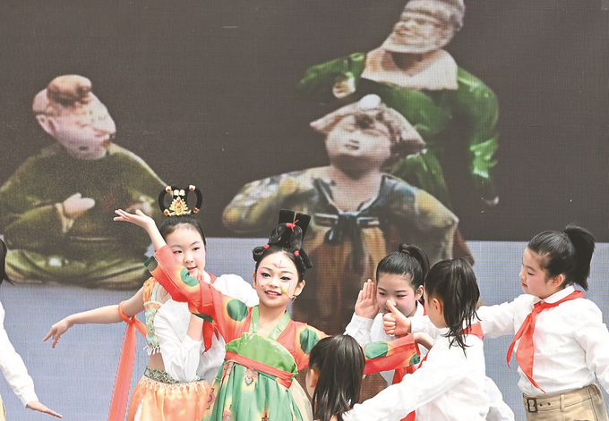 4月1日,身着汉服的青少年在南京市六朝博物馆体验“六朝茶礼”,参观展馆并开展研学活动,感受中华优秀传统文化,乐享首个春假。图为创意表演《文博奇妙Show》。 本报记者 余萍 摄