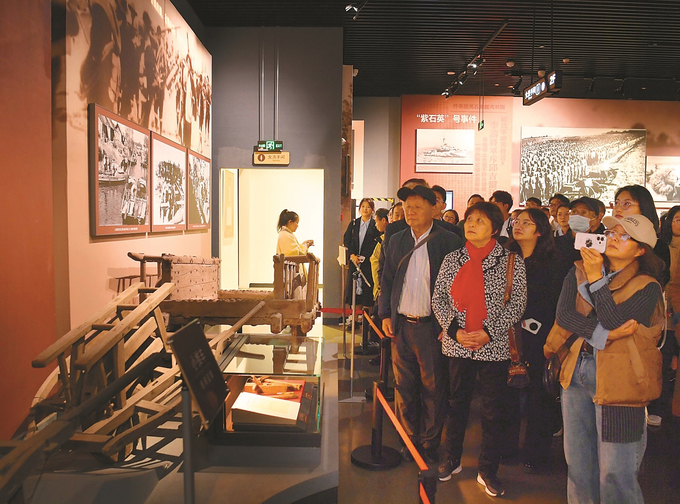 4月23日,观众走进南京渡江胜利纪念馆,重温伟大渡江壮举。77年前,一道雷霆万钧的命令排山倒海、气势磅礴,沿着西起湖口东至江阴的千里战线,百万大军横渡长江,摧枯拉朽,解放全中国。 本报记者 吴俊 摄