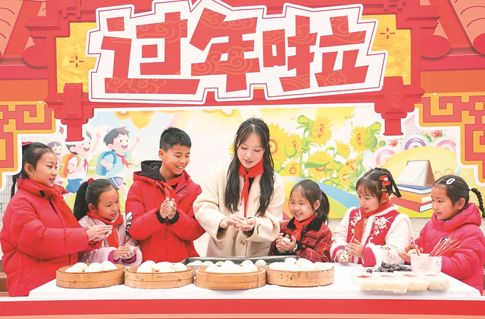 2月5日,南通市通州区金余小学开展“做馒头 迎新年”劳动实践活动。孩子们在老师的带领下亲手制作馒头,体验传统年俗,感受劳动乐趣。 翟伟凯 摄 (视觉江苏网供图)