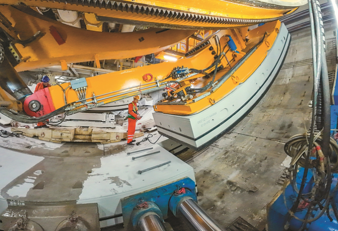 19吨重的管片被“巨手”抓起,毫米级拼装到位。