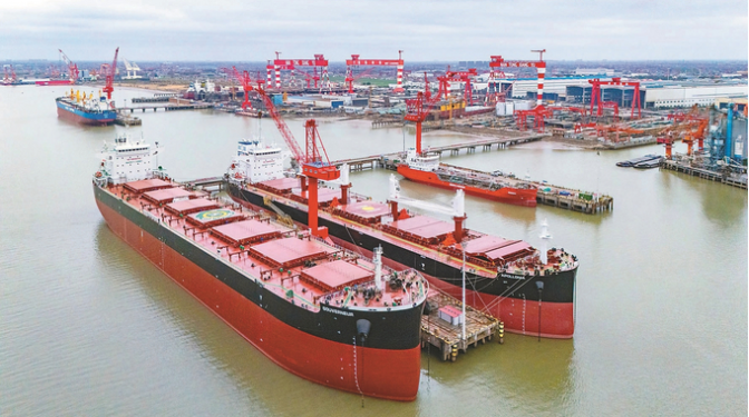 昨日,位于南通市通州区的南通象屿海洋装备公司一派忙碌景象,工人开足马力赶制船舶订单,全力冲刺新春“开门红”。翟慧勇 摄 (视觉江苏网供图)