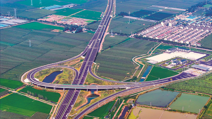 8月25日,泗洪县盐洛高速界集镇入口工程即将完工,项目建成后,将对加快淮河生态经济带建设、构建苏皖省际快速通道、助力成子湖片区乡村振兴等,产生积极而深远的影响。 李佳 摄 (视觉江苏网供图)