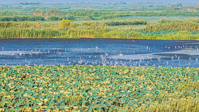 环境好不好,鸟儿会用翅膀来“投票”。如今,洪泽湖湿地保护区内的鸟类已从2013年的147种增至目前的240种,鸟类总数也从20余万只增长到80余万只。