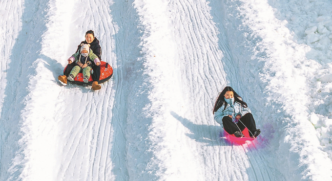 1月24日,泗洪县青阳街道冰雪大世界游乐园迎来客流高峰。大人和孩子在冰天雪地间沉浸式体验冰雪项目乐趣,畅享周末美好时光。 周鹏 摄 (视觉江苏网供图)