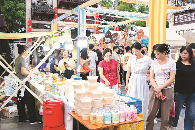 10月1日,张家港市杨舍老街举办“酵个膨友2.0面包节”活动,集美食狂欢、趣味互动、打卡体验与消费福利于一体,超35家优质烘焙品牌吸引众多市民、游客前来选购。 袁艺 摄 (视觉江苏网供图)