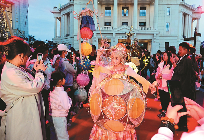 11月2日,首届湖边戏剧节在苏州阳澄半岛乐园举行,汇聚24部顶流剧目。特色巡游剧目沿乐园动线展开,打造“戏在景中、人在剧中”的全域沉浸体验,吸引大批游客前来游玩。 管钰楠 摄 (视觉江苏网供图)