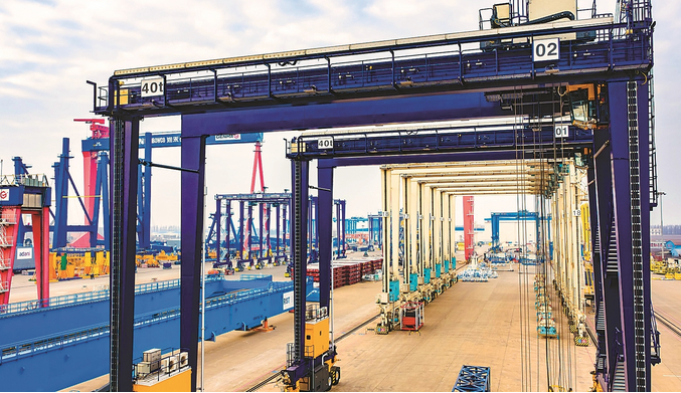 1月25日,太仓港经济技术开发区一家港口机械设备制造企业,生产技术人员正在装配一批出口海外市场的港口集装箱起重机械设备。今年以来,该公司奋力冲刺新年生产“开门红”,生产的海洋工程装备和港口机械设备呈现产销两旺态势。 计海新 摄 (视觉江苏网供图)