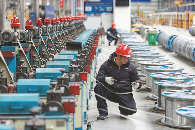 二月二十四日,工人在位于泰州市海陵区的江苏金桥焊材科技有限公司生产线上忙碌。 汤德宏 摄 (视觉江苏网供图)