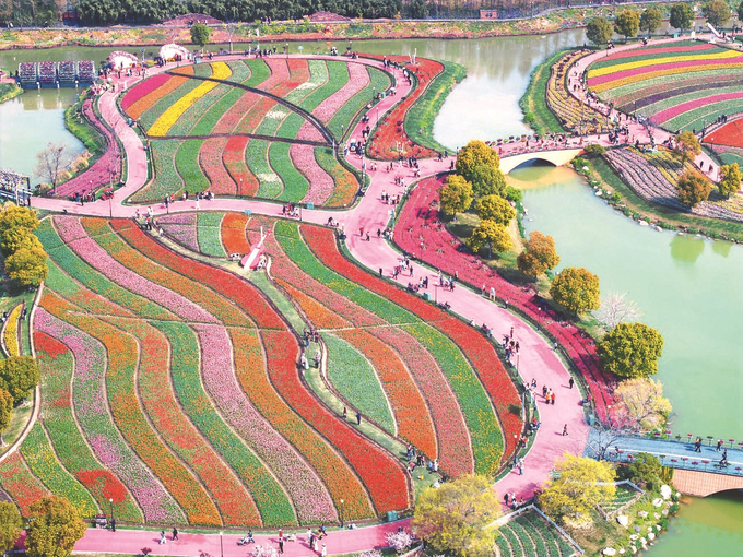昨日,游客在盐城大丰荷兰花海景区赏花游玩。 杨素平 摄 (视觉江苏网供图)