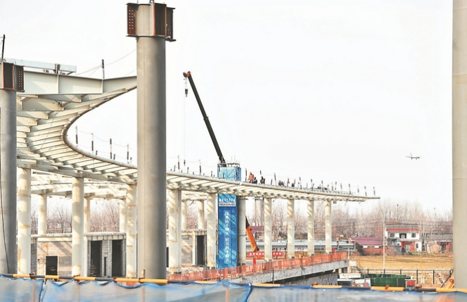 2月20日,航空工程建筑工人奋战在扬州泰州国际机场二期扩建工程T2航站楼项目工地上。500余名建设者正进行钢结构拼装,致力于打造“最美旅游机场”。 庄文斌 摄(视觉江苏网供图)