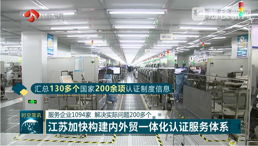记者从省市场监管局获悉,今年以来,江苏加快构建内外贸一体化认证服务体系,助力江苏企业内外贸融合发展、顺滑切换,累计汇总全球130多个国家200余项认证制度信息,围绕10个产业60类产品编制完成内外贸一体化认证服务指南,为企业提供国内外认证制度、认证机构、业务指导等信息服务;指导31家认证机构开通外贸转内销产品强制性认证绿色通道,为省内外贸企业提供缩短证书办理时间、合理减免认证费用等CCC认证便捷服务措施。同时,通过开展“服务进园区”活动,服务企业1094家,帮助企业解决实际问题200多个。