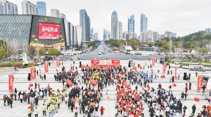 “新年第一天,过得很特别!”流动的人群里,一支由外卖小哥、快递小哥组成的队伍格外醒目。苏州外卖小哥舒龙带着20余名同事,跟着大部队沿狮山路,经横跨京杭大运河的狮山桥,步行约3.6公里前往苏州市体育中心。由他牵头成立的“舒龙工作室”,已带动40名小哥参与基层治理,服务总时长超800小时。舒龙许下了新年愿望:“凝聚更多‘新’力量,为城市做更多力所能及的事。”