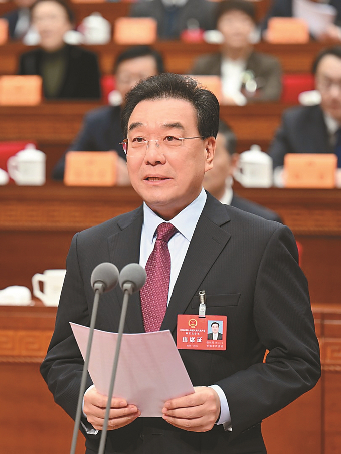 省长刘小涛代表省人民政府向大会作政府工作报告。 本报记者 朱江 摄