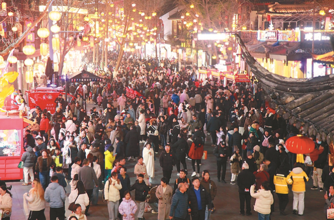 2月15日,春节假期第一天,很多游客在南京夫子庙景区游玩,观看秦淮灯会,乐享春节假期。 刘建华 摄 (视觉江苏网供图)