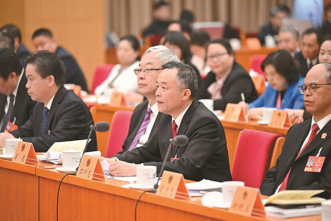 3月11日,十四届全国人大四次会议江苏代表团举行全体会议,审议全国人大常委会工作报告、最高人民法院工作报告、最高人民检察院工作报告。 本报记者 吴胜 万程鹏 摄