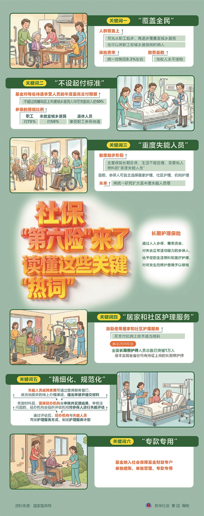 意见明确,建立适应我国基本国情,覆盖全民、统筹城乡、公平统一、安全规范、可持续的长期护理保险制度。