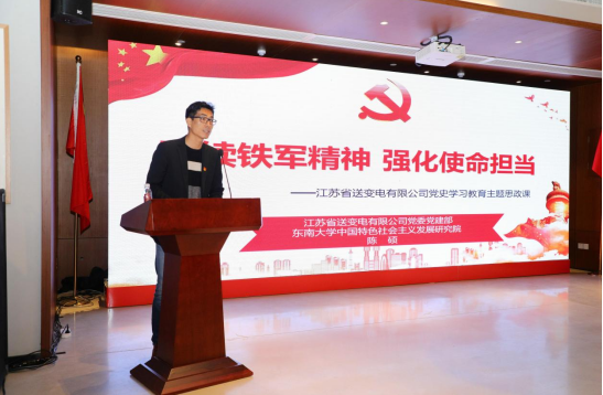溧水红色李巷是著名的革命老区,也是新四军“铁军”精神的重要诞生地。素有“电网铁军”之称的江苏省送变电有限公司,成立68年来形成了“特别负责任、特别能战斗、特别能吃苦、特别能奉献”的精神特质,与新四军的“铁军精神”一脉相承。该公司和新华传媒集团合作,量身定做了铁军主题思政课,由特聘党史学习教育讲师团成员讲授。本期由东南大学中国特色社会主义发展研究院副院长陈硕以《赓续铁军精神 强化使命担当》为题,结合新四军历史,通过新四军的英雄人物和英勇事迹,详细阐明了铁军精神的核心内涵,感召新时代电力人传承红色血脉,赓续铁军精神,进一步强化使命担当,充分发扬“四特”的电网铁军精神,为国家电力事业发展作出更大贡献。