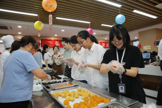 月饼制作体验区同样热闹非凡。“和同事一起动手,感觉就像一家人一样,特别幸福温暖。”参与的员工们在专业指导下,亲手制作专属月饼。从和面、包馅到压模成型,大家沉浸在传统美食的制作过程,深刻感受中秋文化的魅力与韵味。