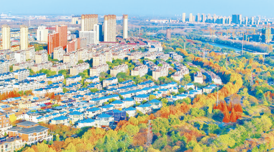 近日,航拍镜头下的淮阴区古淮河畔,碧水、树木、建筑等勾勒出一幅美丽画卷。