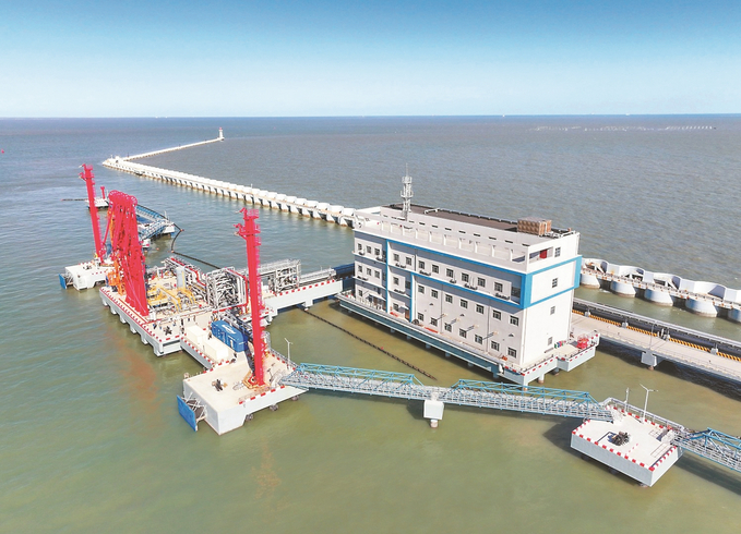 位于连云港港徐圩港区6港池的连云港港徐圩港区30万吨级原油码头部分已于日前交工。该项目总投资约9.45亿元,年设计通过能力1860万吨。该项目投产后,将加速推动徐圩港区临港产业项目落地,服务临港产业高质量发展。 图为11月6日拍摄的码头。 王健民 胡唯豪 摄(视觉江苏网供图)