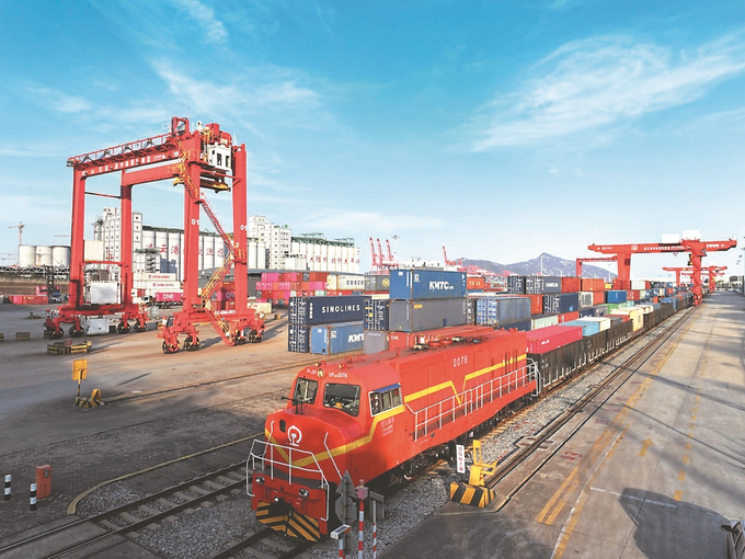 11月23日,满载集装箱的中欧班列从中哈(连云港)物流合作基地发车。截至11月16日,连云港中欧(亚)班列今年累计开行820列,同比增长14.4%,提前45天完成全年开行任务,运量完成规模位居全省首位。 王春 佃好 摄 (视觉江苏网供图)