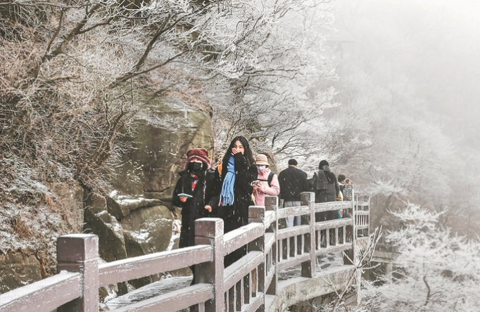 2月22日,连云港市海上云台山景区出现雾凇美景,吸引不少游人前来观赏。 王健民 刘甜甜 摄 (视觉江苏网供图)