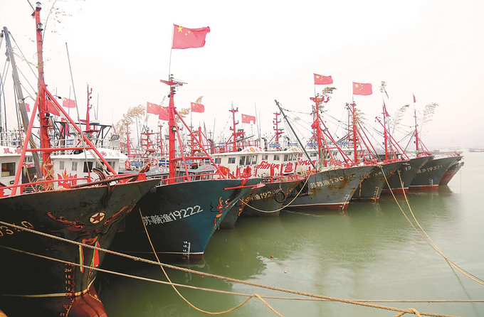 3月2日,在连云港市连云区连岛中心渔港码头,渔船停泊在港湾躲避大风大浪。当日起,受入海气旋与冷空气共同影响,连云港市海区风力明显增强,将出现9到10级阵风11级的东北大风,全市5000多艘渔船和养殖船已全部返港躲避大风大浪。当地海洋气象台发布了海区大风橙色预警信号,并提醒注意防范。 王春 摄 (视觉江苏网供图)