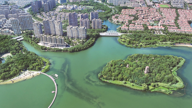 8月12日,鸟瞰位于南京市鼓楼区的国睿科技园项目,项目办公区主体结构已露“真容”。据悉,该项目将布局工业软件、智能制造、人工智能等重点领域,汇聚数字芯片、射频芯片等“芯”行业的研发企业,与周边产业园实现产业集聚和协同发展。建设完成进入运营期后,将新增和带动就业1万人。 本报记者 吴俊 摄