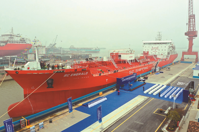 12月20日,25900载重吨不锈钢化学品船在南京顺利交付。该船采用新一代节能型船体线型与先进的液货系统配置,配备高效主机、优化推进系统及多项环保技术,具备能耗低、排放少、操作安全性高等优势,充分满足国际最新环保与安全规范。该船的顺利建造与交付,进一步巩固了南京造船在国际、国内中小型化学品船领域的市场地位。 本报记者 邵丹 摄